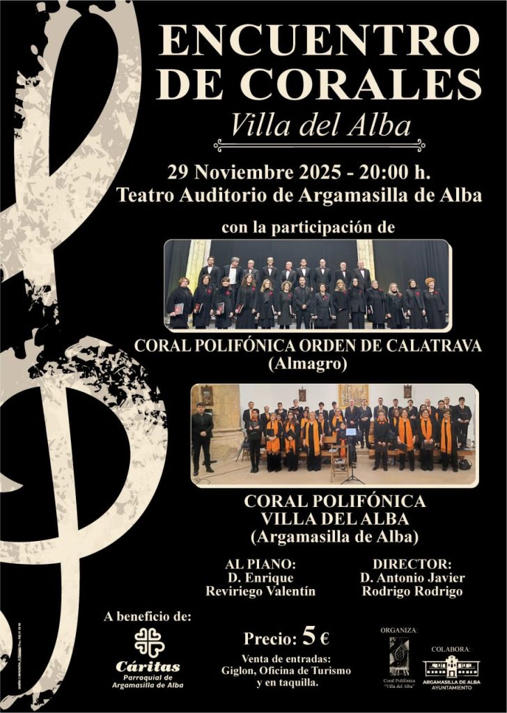 • Encuentro coral Santa Cecilia 2024. 9 de Noviembre a las 20:30 horas. Teatro Auditorio de Argamasilla de Alba